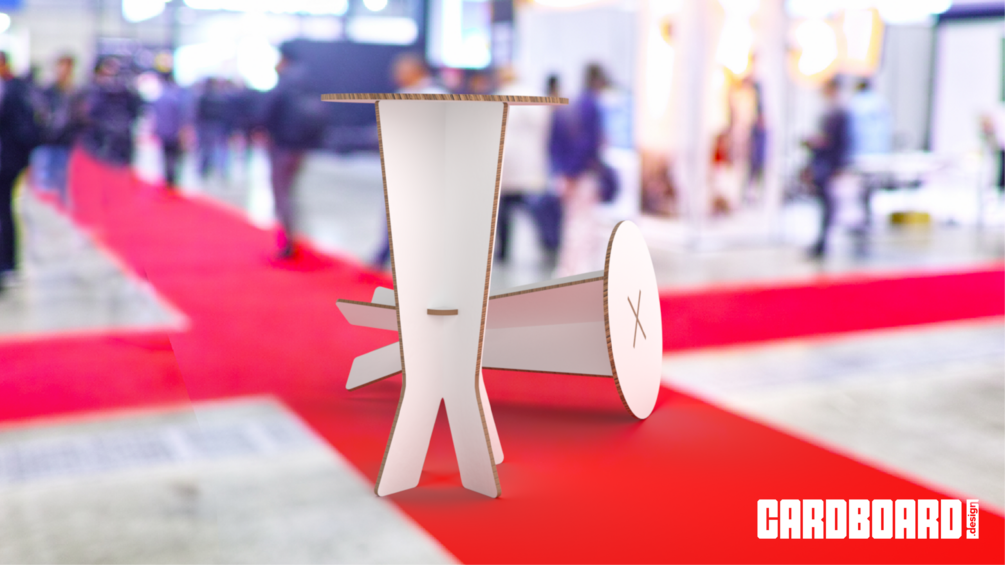 Discover our cardboard Bistro Table with a height of 1106mm. Perfect for your festive or more professional events. It can be customized with a print easily. Quick to assemble and without glue or accessories ... it can be assembled quickly for your parties.